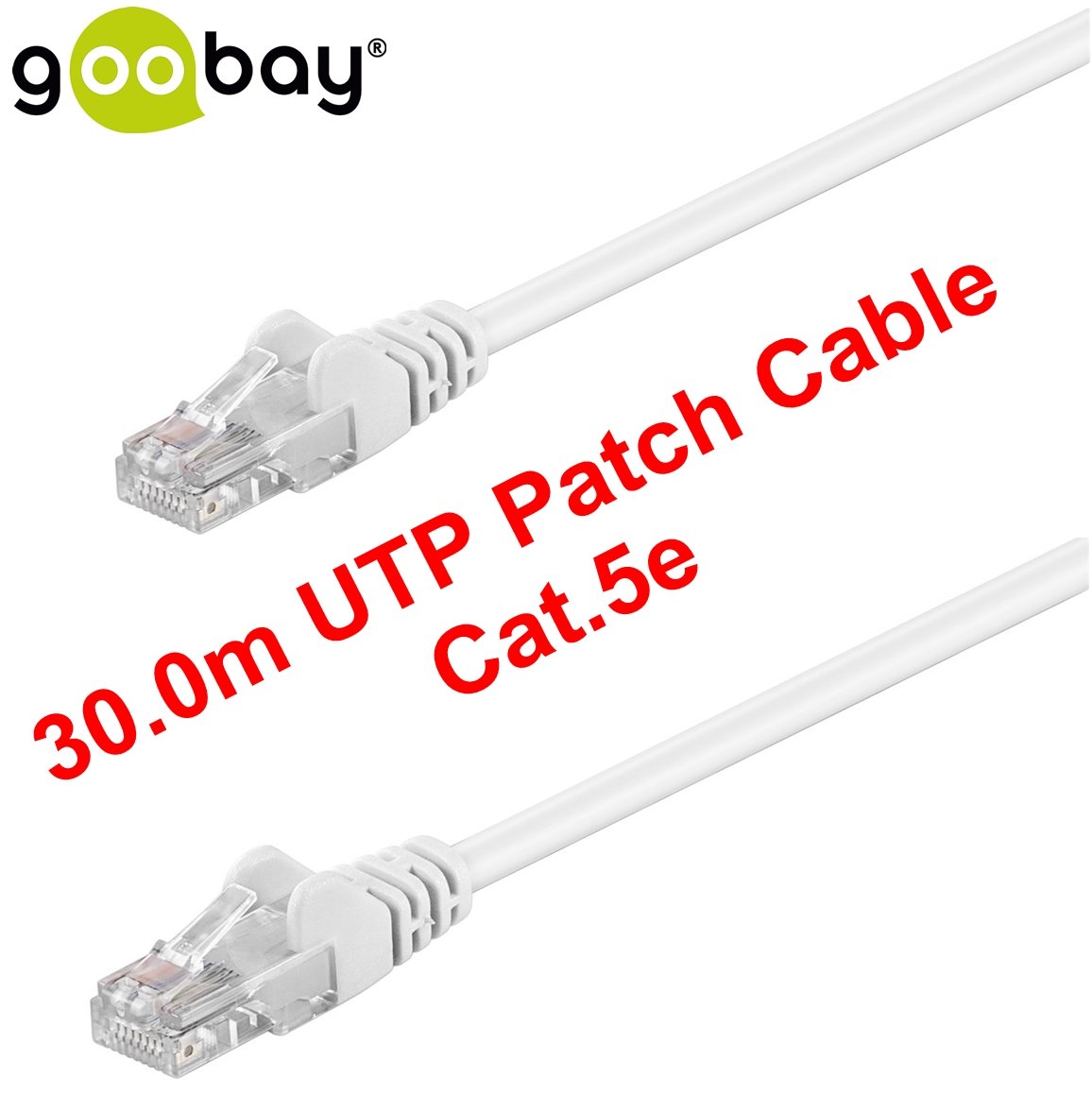 – 30.00m UTP Patch Cable Cat.5e GOOBAY (бял) е висококачествен мрежов кабел с дължина 30 метра, предоставящ стабилна и надеждна връзка за предаване на данни в компютърни мрежи.