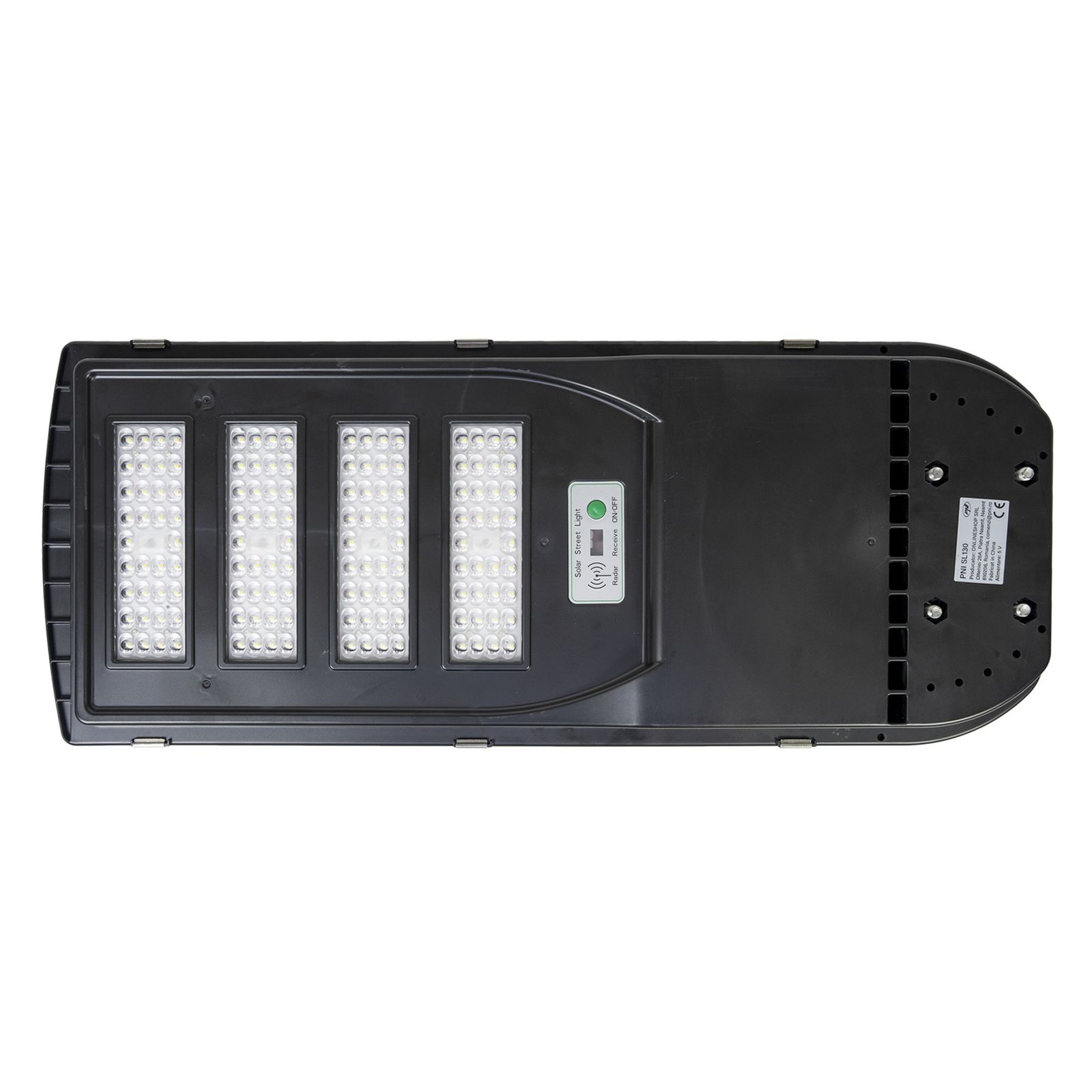 – Лампата за улично осветление PNI SL130 е енергийно ефективна LED лампа с вграден соларен панел и микровълнов сензор за движение.