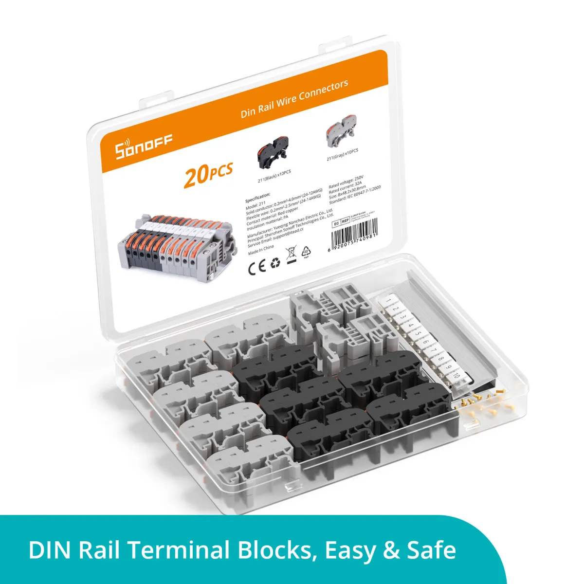 – Перфектен комплект клемни блокове за DIN шина: Комплектът клеми се доставя с 20 бр. 12 AWG клемни блокове, 2 бр. свързваща лента, 2 бр. цифрова идентификация, 20 бр. винтове, 2 бр. скоба за крайна запушалка и прозрачна кутия за съхранение.